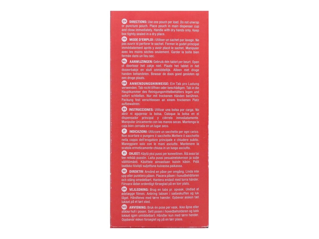 Použití: Použijte 1 tabletu na 1 mycí cyklus. Sáček nerozbalujte ani nepropichujte. Umístěte sáček s tabletou do hlavního dávkovače pro tablety ve Vaší myčce a myčku uzavřete. Pracujte pouze suchýma rukama. Skladujte balení důkladně uzavřené na suchém místě.