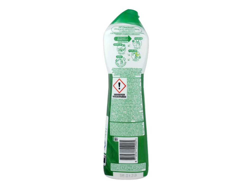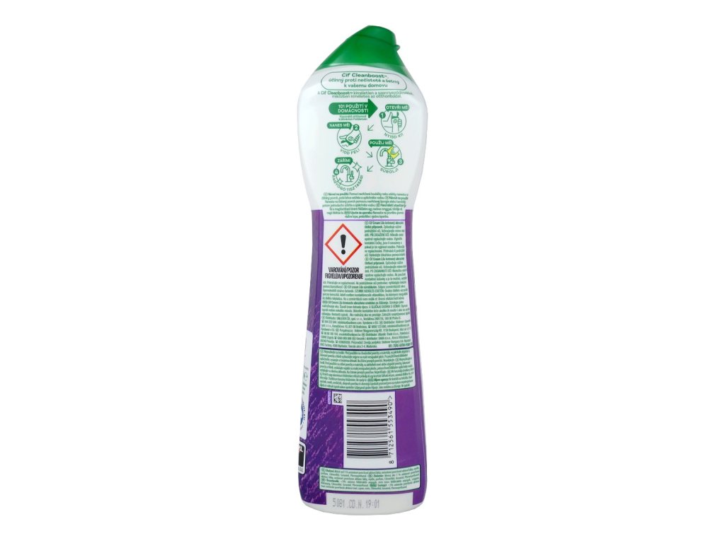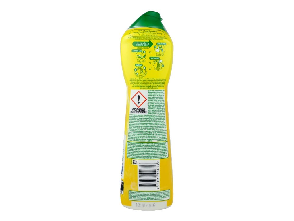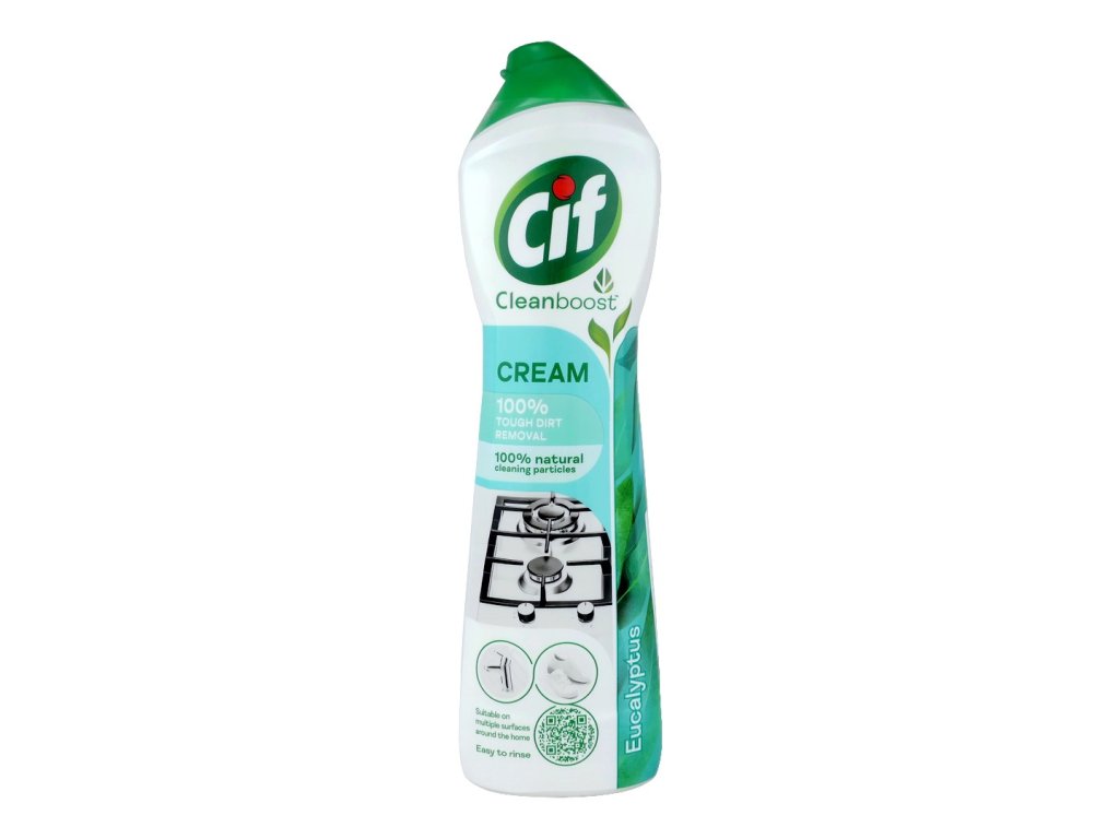 Cif Cleanboost™ je krémový abrazivní čistící přípravek na bázi mikrokrystalů přírodního vápence účinný proti nečistotě a šetrný k Vašemu domovu. Pomůže Vám snadno vyčistit téměř všechny povrchy ve Vaší domácnosti, včetně těch moderních. Odstraní i zdánlivě nevyčistitelnou špínu ve Vaší kuchyni, koupelně i celé domácnosti. Je oblíbeným pomocníkem při čištění sporáku a nerezových baterií, osvědčil se dokonce na obnovení vzhledu staršího plastového zahradního nábytku, dětských tříkolek, zašlých bílých kožených sportovních bot (botasek) a mnoho dalšího. Přípravek ve formě tekutého písku s krémovou konzistencí a obsahem 100% přírodních čistících složek je abrazivní, proto je vhodný i pro odstranění náročných nečistot. Při jeho používání zároveň není třeba drhnout povrchy silou. Snadno se oplachuje. Praktické balení v ergonomicky tvarované plastové láhvi s vyklápěcím uzávěrem obsahuje 500ml.