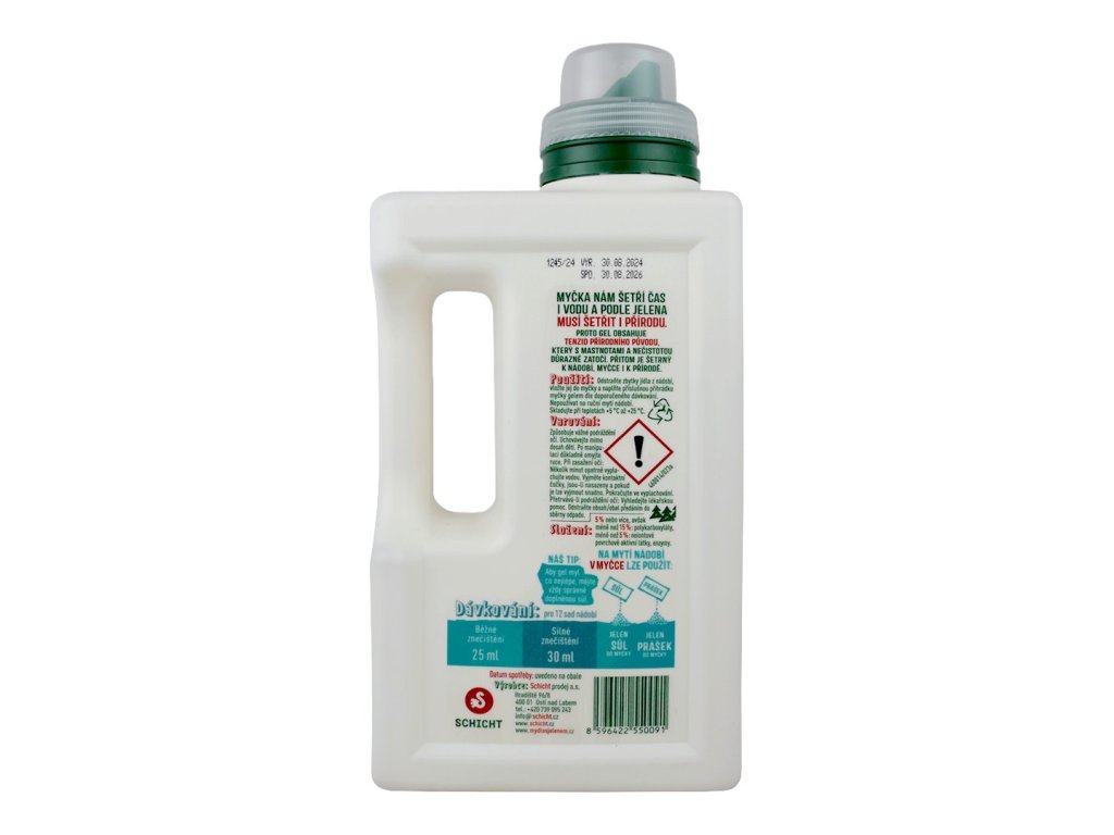 Myčka nám šetří čas i vodu a podle Jelena musí šetřit i přírodu. Proto gel obsahuje tenzid přírodního původu, který s mastnotami a nečistotou důrazně zatočí. Přitom je šetrný k nádobí, myčce i k přírodě. Velké balení v recyklovatelné plastové láhvi z recyklovaného plastu s uchem pro snadný přenos a dávkovacím víčkem s nálevkou obsahuje 1,25L a vystačí až na 54 běžných mycích cyklů.
