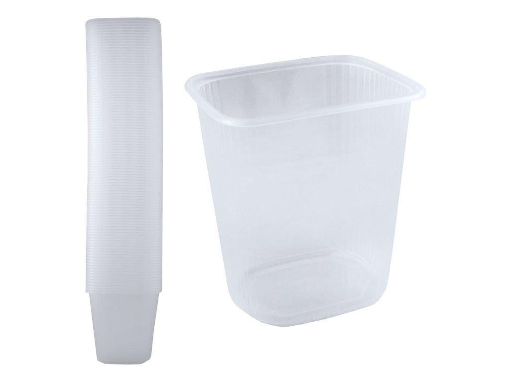 KARTON - Plastová čirá hranatá vanička pro uchování teplých i studených potravin, jako jsou velké saláty, pomazánky, zavináče, závitky apod. Misku lze uzavřít víčkem (není součástí balení). Miska je vhodná pro uchování horkých i ledových potravin při teplotách od -20°C do +130°C. Velké balení obsahuje 100ks.
