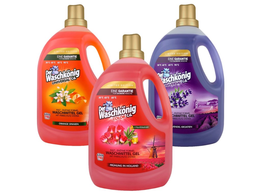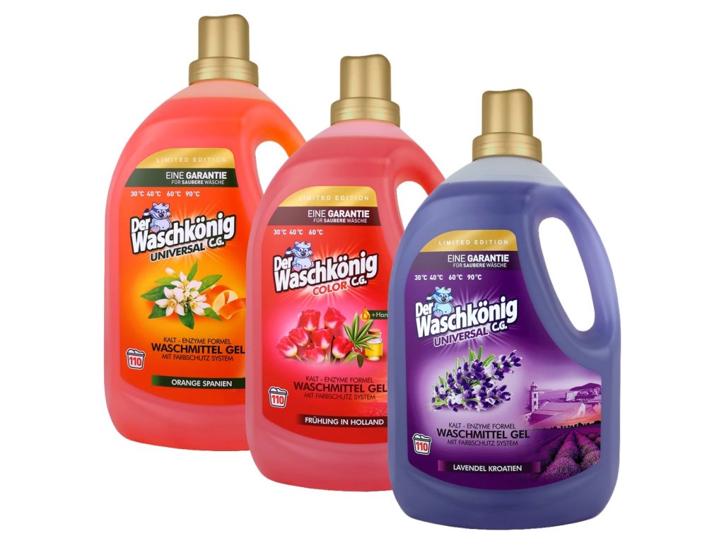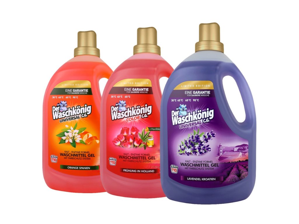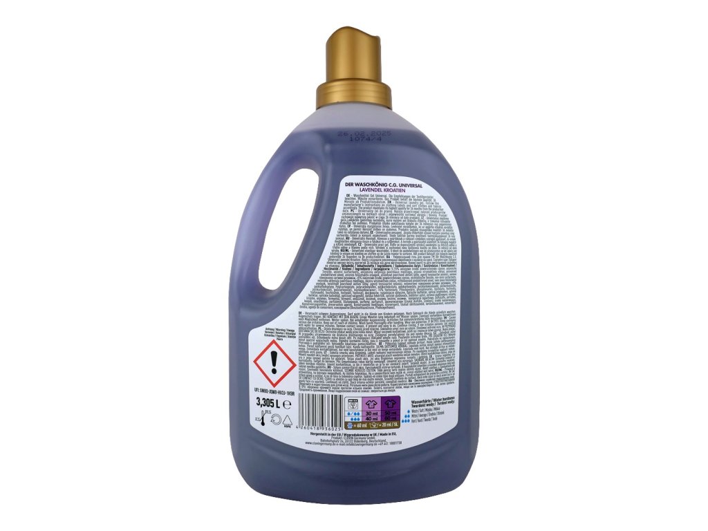 LIMITOVANÁ EDICE - Oblíbený německý prací gel Der Waschkönig C.G. je vhodný pro praní ve všech typech automatických praček i pro ruční praní. Obsahuje enzymy pro účinné odstraňování skvrn již od nízkých teplot praní. Prací gel navíc využívá systém pro ochranu barev Vašeho prádla. Vaše prádlo tak pokaždé dokonale vypere, rozjasní barvy a provoní tkaniny příjemnou originální svěží vůní, která na prádle dlouho vydrží. Velké balení v pevné plastové láhvi s uchem pro snadnou manipulaci a stylovým dávkovacím víčkem obsahuje 3,305L a vystačí až na 110 pracích cyklů.